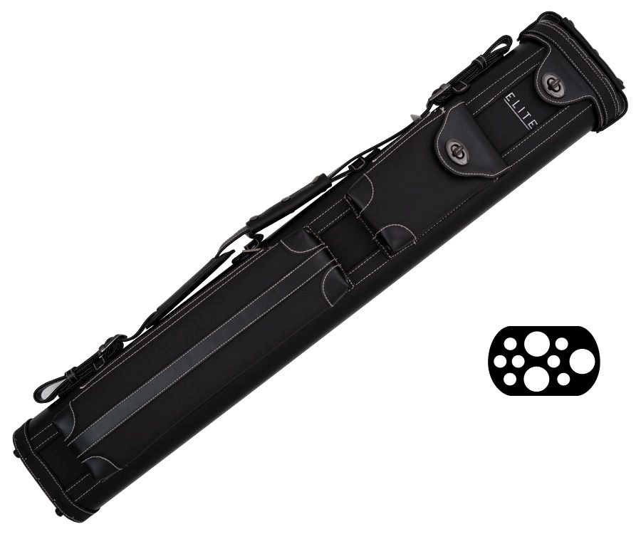 Made of black vinyl and white stitching with all black hardware this case looks sweet. It has carrying handle on the top and side and a shoulder strap.