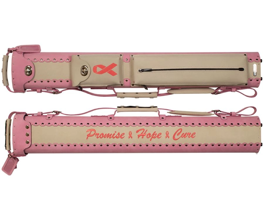 This case is designed to hold two butts and four shafts, and is constructed from soft sueded leather. It has a hard molded interior and two easy to access accessory pockets so that everything you need to shoot is right at your fingertips. This case also comes with an adjustable leather shoulder strap and a latch-top enclosure.